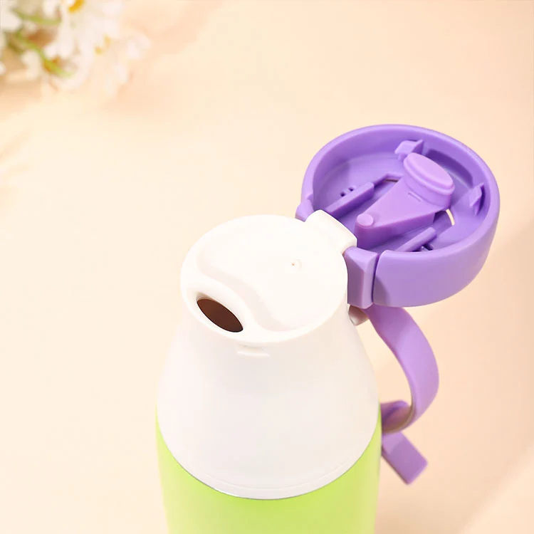 Izolowana próżniowo butelka ze stali nierdzewnej 304 należy do butelek na mleko dopaminowe, z okrągłą pokrywką, którą można łatwo otworzyć za pomocą pociągnięcia i zablokować jednym naciśnięciem, aby zapobiec przypadkowemu otwarciu nakrętki butelki.